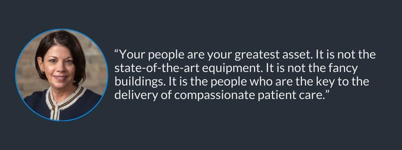 “As all of you know, your people are your greatest asset. It is not the state-of-the-art equipment. It is not the fancy buildings. It is the people who are the key to the delivery of compassionate patient care.” stated Nancy Shendell-Falik. “We are at a point where, by not being proactive, we risk staff satisfaction and engagement, which impacts patient care and staff retention. And when people leave, it’s disruptive to their environment, disruptive to the organization, [and] has a financial toll as recruiting and orienting new staff hits the budget.”