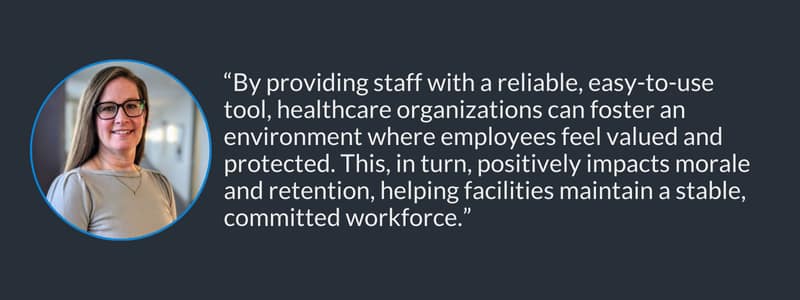 Lastly, the webinar explored how CrisisAlert contributes to creating a culture of safety within healthcare facilities. “By providing staff with a reliable, easy-to-use tool, healthcare organizations can foster an environment where employees feel valued and protected,” shared Greco. “This, in turn, positively impacts morale and retention, helping facilities maintain a stable, committed workforce.”