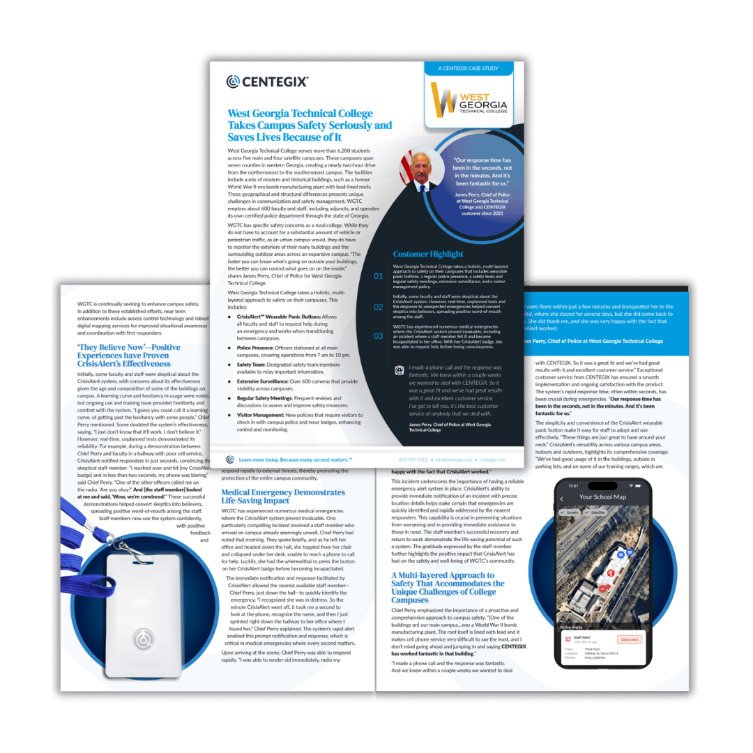 Get the details on how West Georgia Technical College used CrisisAlert to save a life, and then share with leaders, decision-makers, and other stewards of safety so they can see how we can help you create a culture of safety on your campus.
